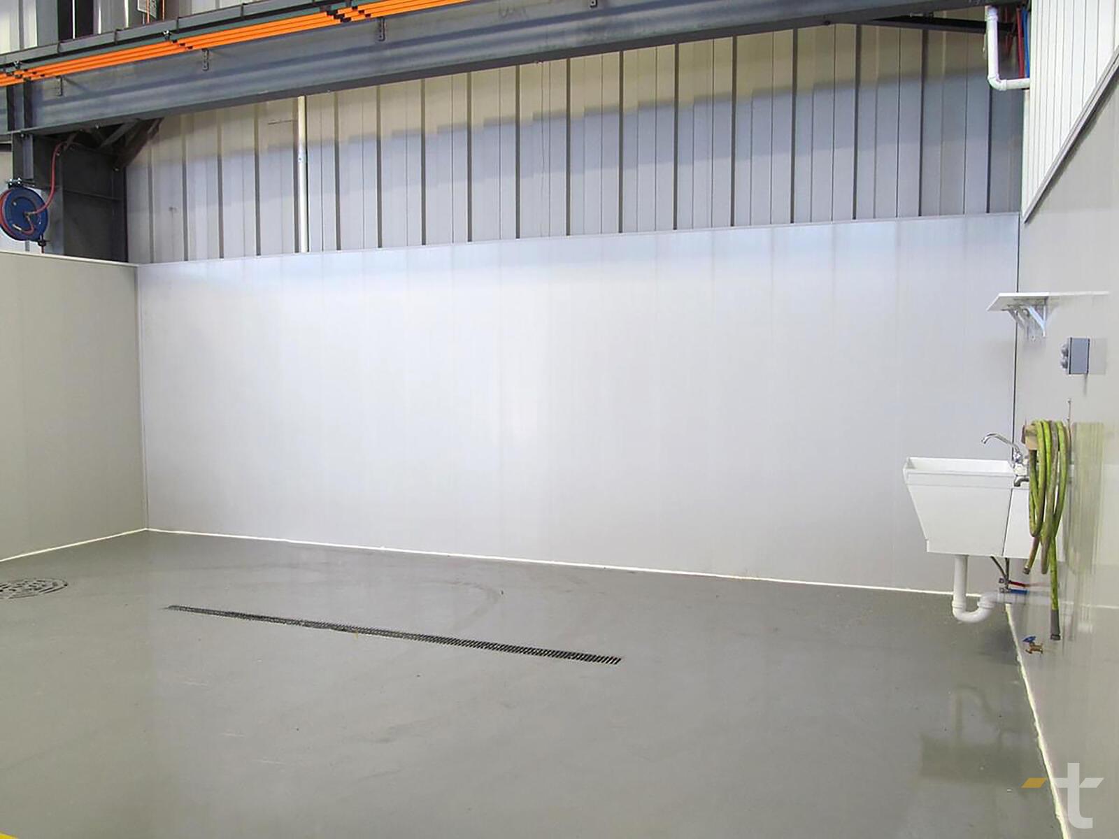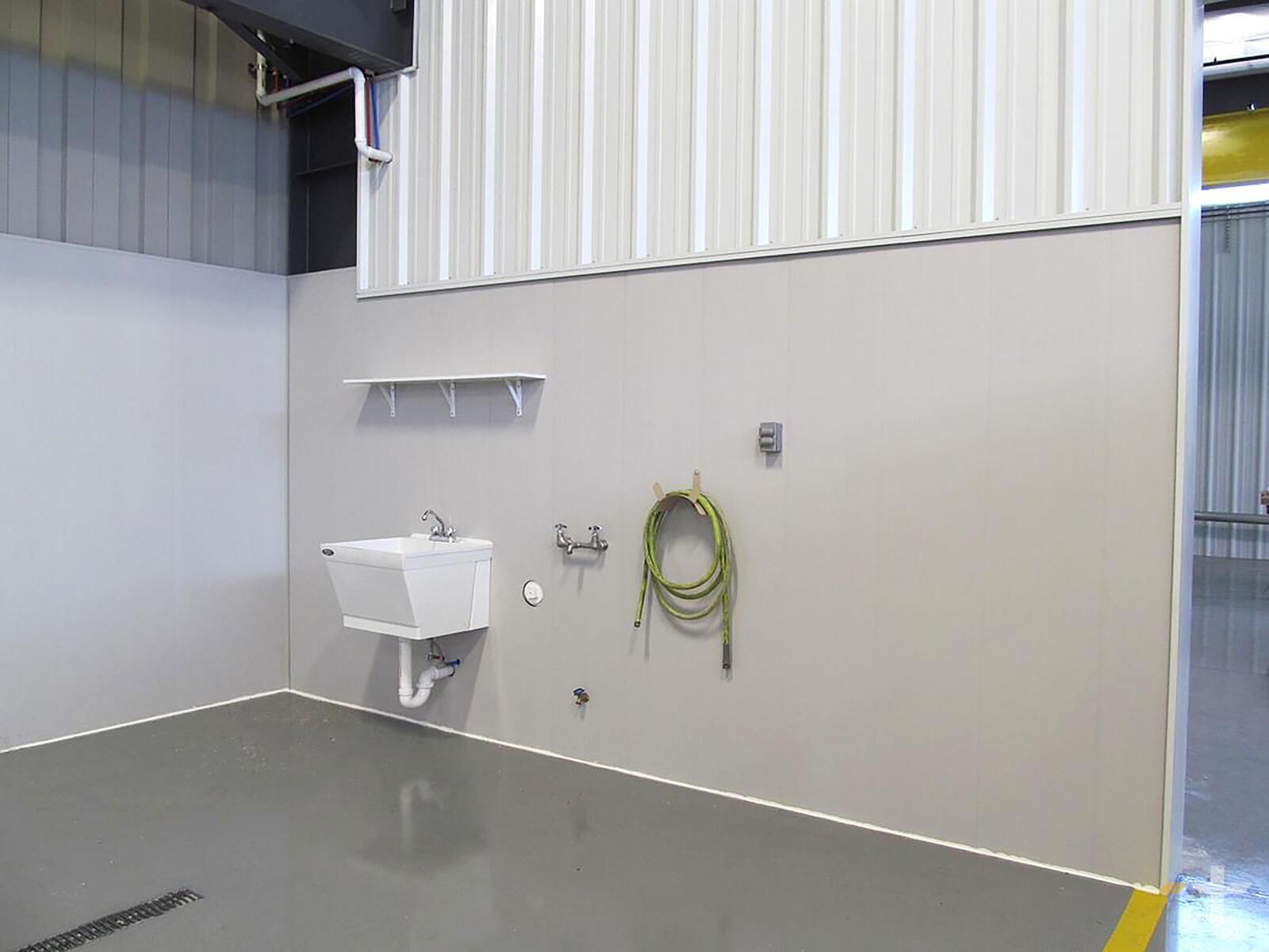 Trusscore panels have a smooth, non-porous finish that's easy to clean and disinfect — they can't be harmed by detergent or chemical cleaners and can be repeatedly pressure washed without ever showing signs of wear and tear.