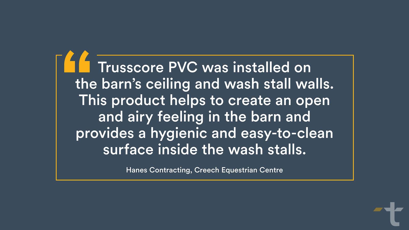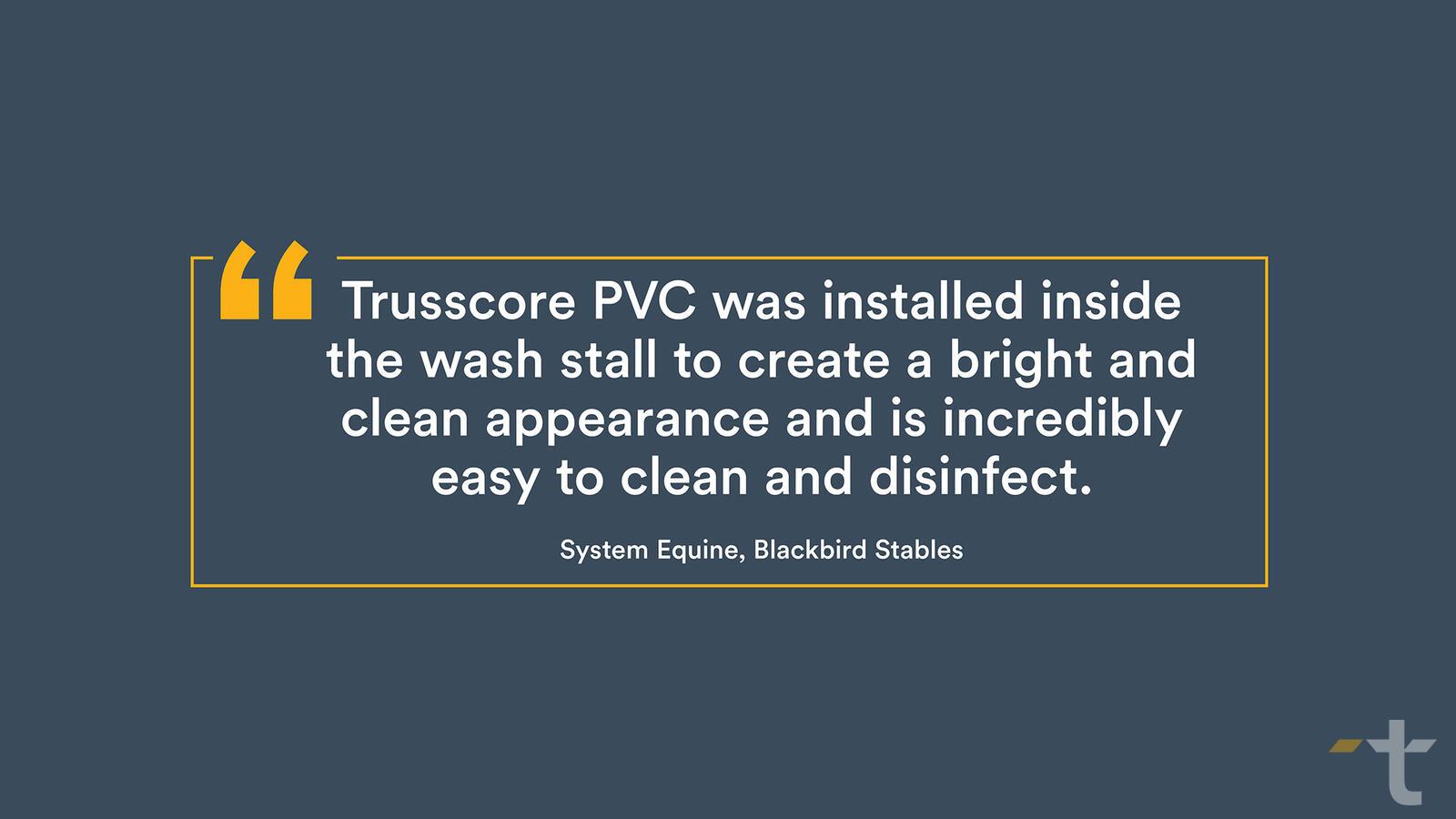 No product is more suited to meeting those needs than Trusscore PVC-based wall, ceiling, and penning products.