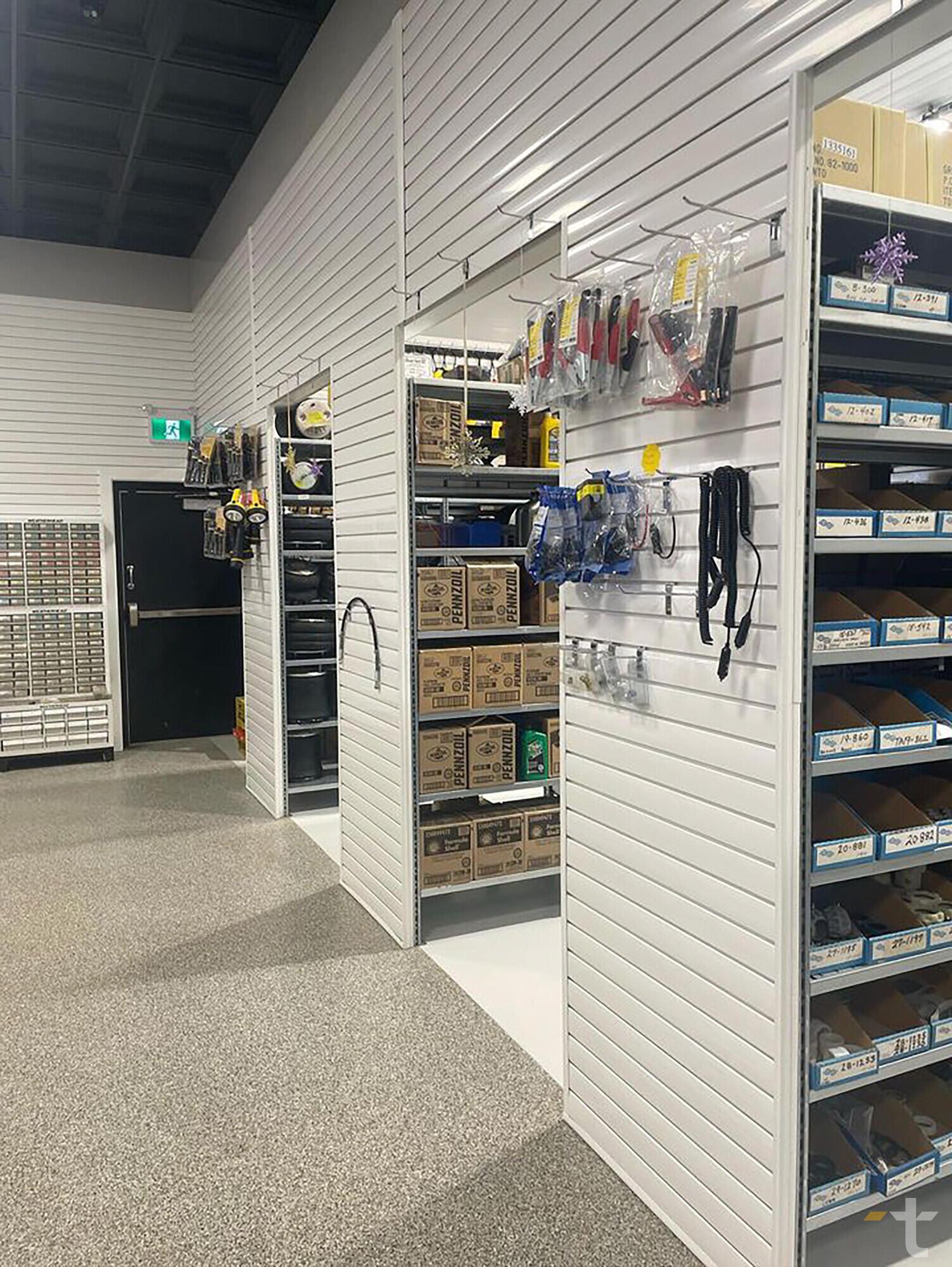 Trusscore SlatWall is a high-strength, on-the-wall organization system that’s easy to install and seamlessly integrates with Trusscore Wall&CeilingBoard.