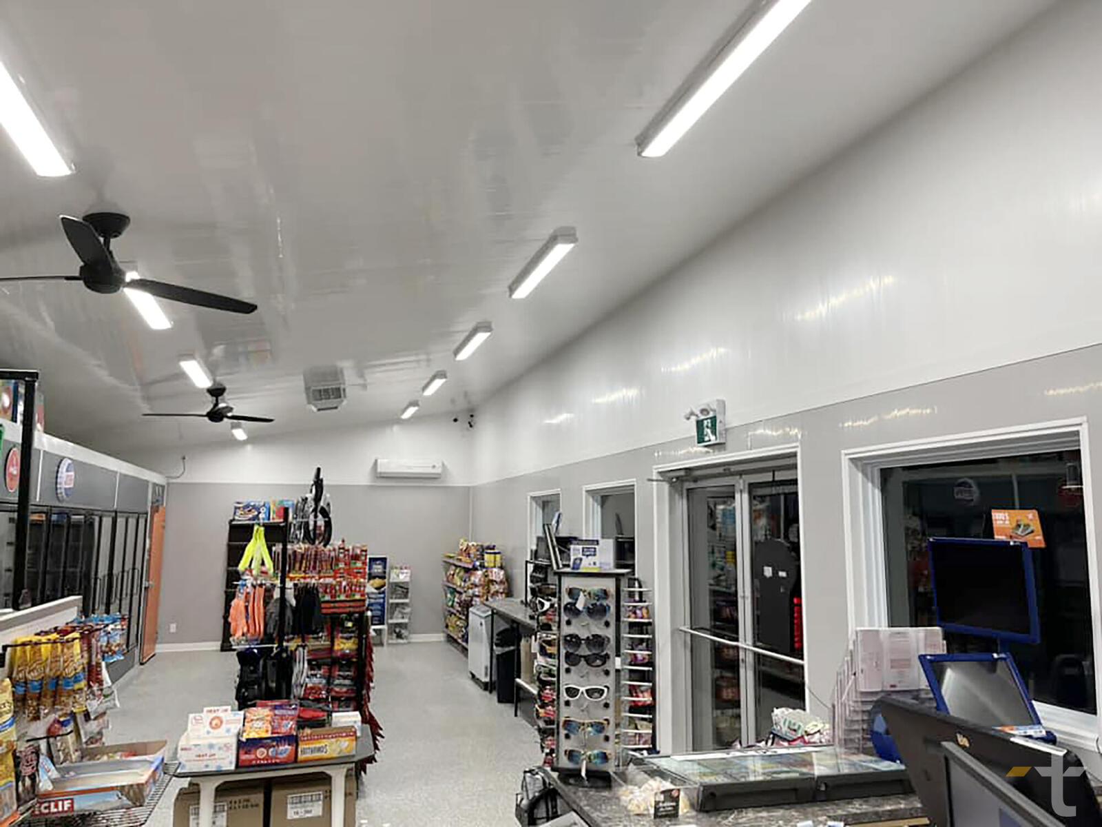 Trusscore Wall&CeilingBoard is designed as a more permanent cover for existing drywall or bare studs. It’s tongue-and-groove truss design provides immense strength, making it perfect for high-traffic areas, storerooms, copier rooms, office kitchens, or for any back-of-house needs.