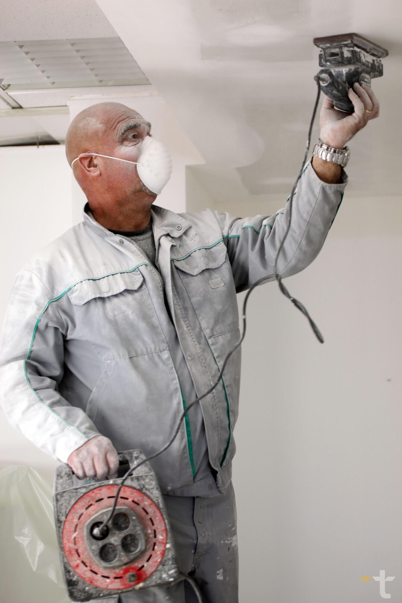 - Using your drywall sander, sand the new area to smooth it out. Goggles may be needed during this process to protect your eyes.