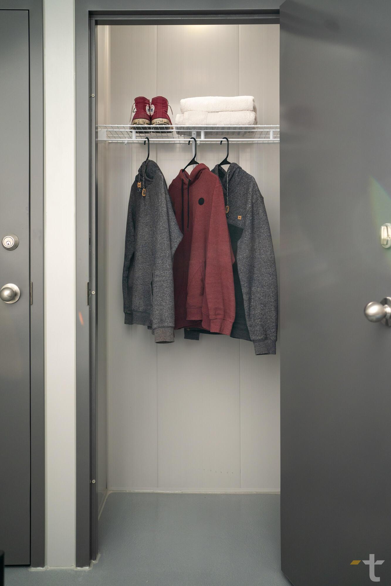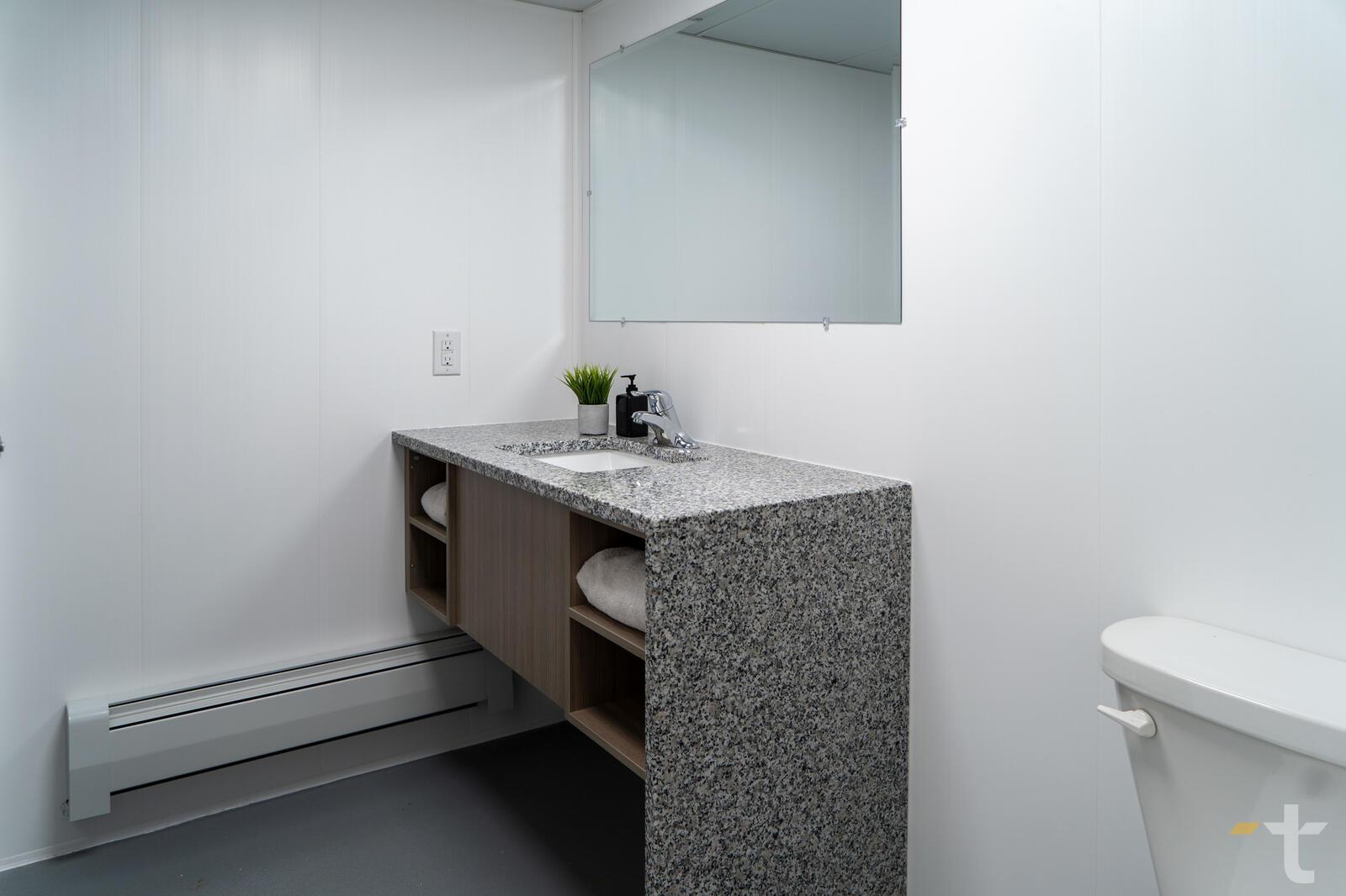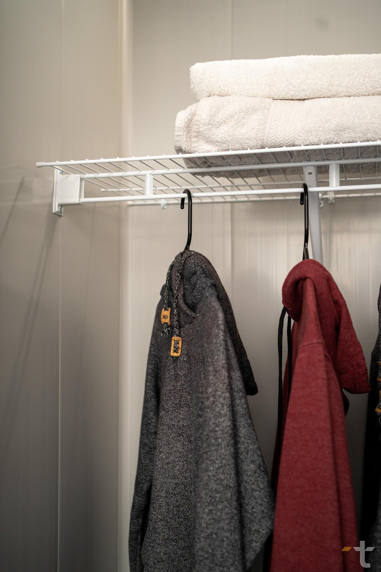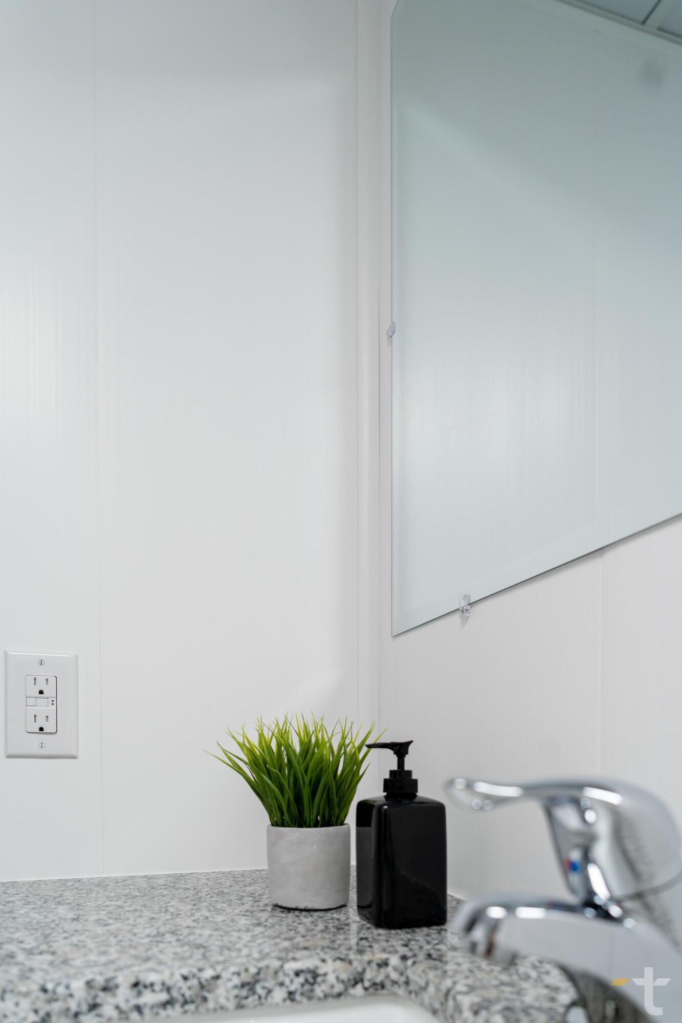 Liovas, during construction of the units, had his construction teams apply a bead of silicone where the Trusscore panels and J Trim meet the floor, creating a sealed barrier that prevents anything from getting behind the wall. “It’s a big advantage for us,” says Liovas. “These workers deserved better conditions. They needed safe, clean, living arrangements.”