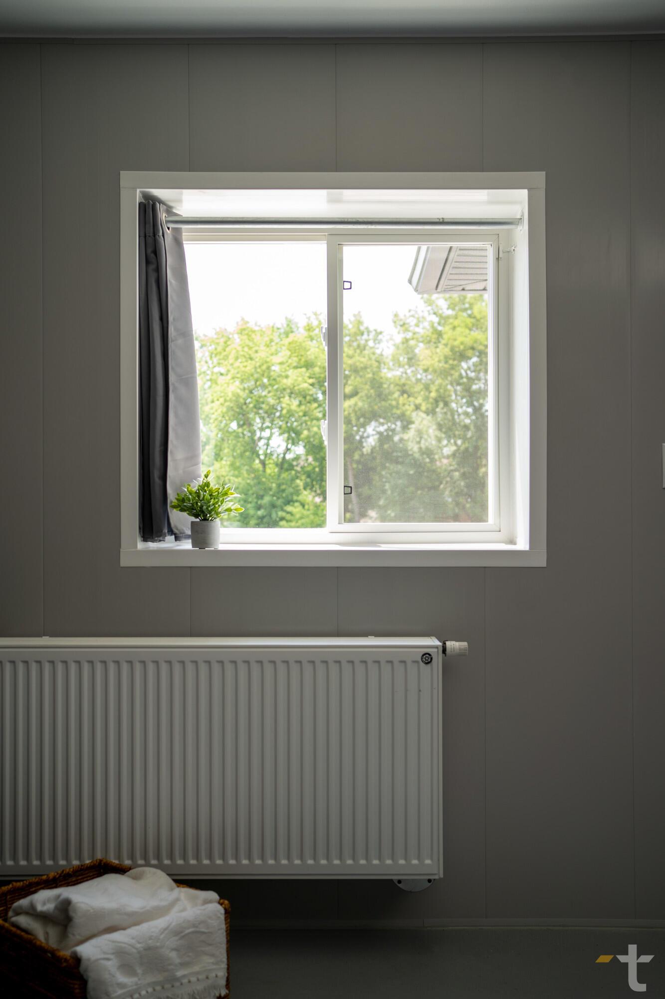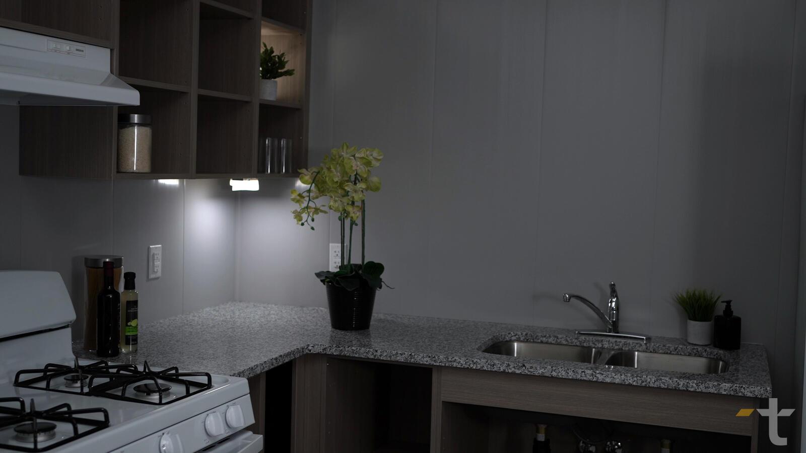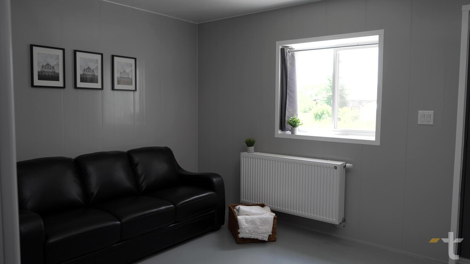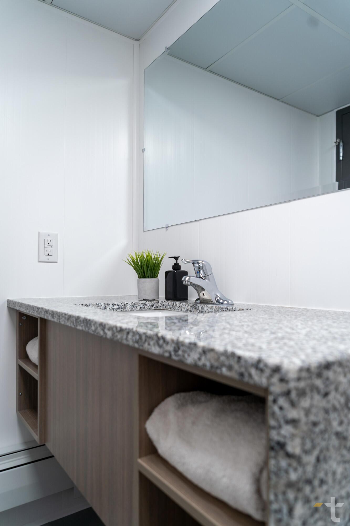 Liovas, during construction of the units, had his construction teams apply a bead of silicone where the Trusscore panels and J Trim meet the floor, creating a sealed barrier that prevents anything from getting behind the wall. “It’s a big advantage for us,” says Liovas. “These workers deserved better conditions. They needed safe, clean, living arrangements.”