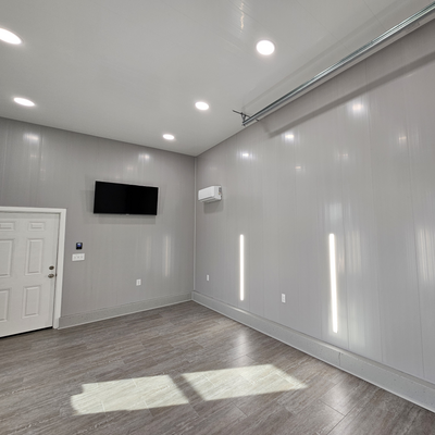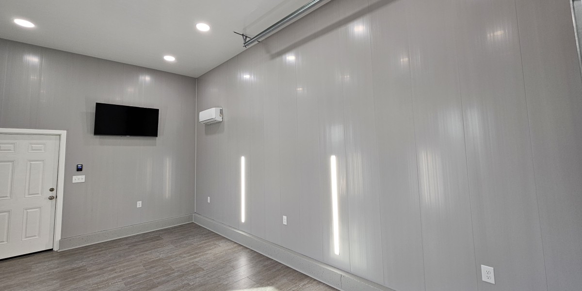 “It is super strong and so easy to clean. A wet microfiber towel wipes away any smudges or smears," says Mike. Unlike drywall, there’s no stress about damage, stains, or long-term upkeep. “I don’t worry about scratching or dinging them up like drywall would. No mold or cracking joints to worry about with fluctuations in temperature. In fact, it is simply worry free.”