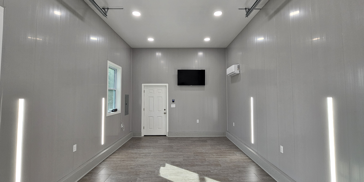 He ran the ceiling panels wall to wall and installed the wall panels vertically, creating a seamless, professional finish.