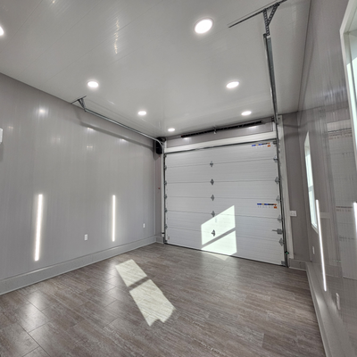 “Installation was a breeze. I used a mitre saw with a backwards blade for most of my cuts. Cutting out for flush mounted lights and outlets I used a jigsaw. Based on the size of my garage and the range of lengths that Trusscore offers, I was able to install without any seams.”