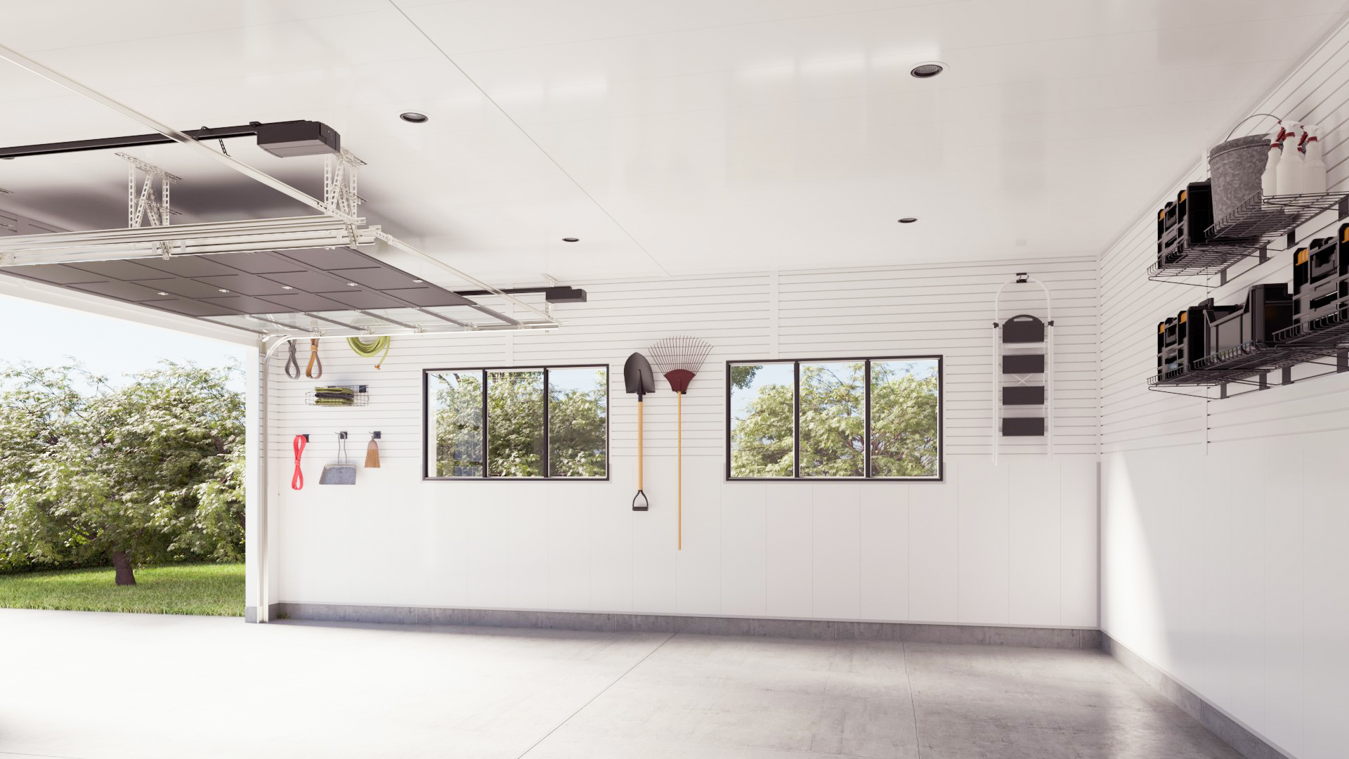 Garage storage is a booming $36B market. A standard two-car garage requires ~1,000 sq ft of Trusscore, generating $3,000 to $5,000 in product sales—a significant margin upgrade over drywall and MDF slatwall.