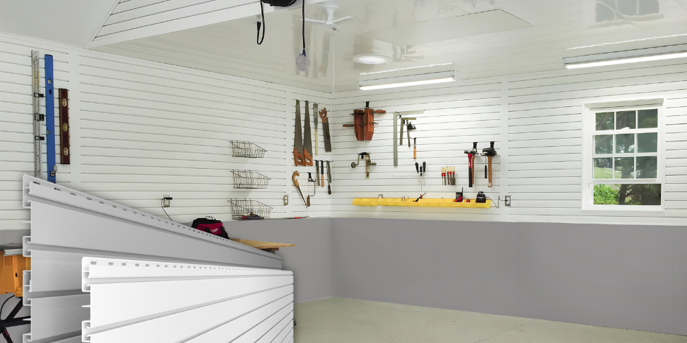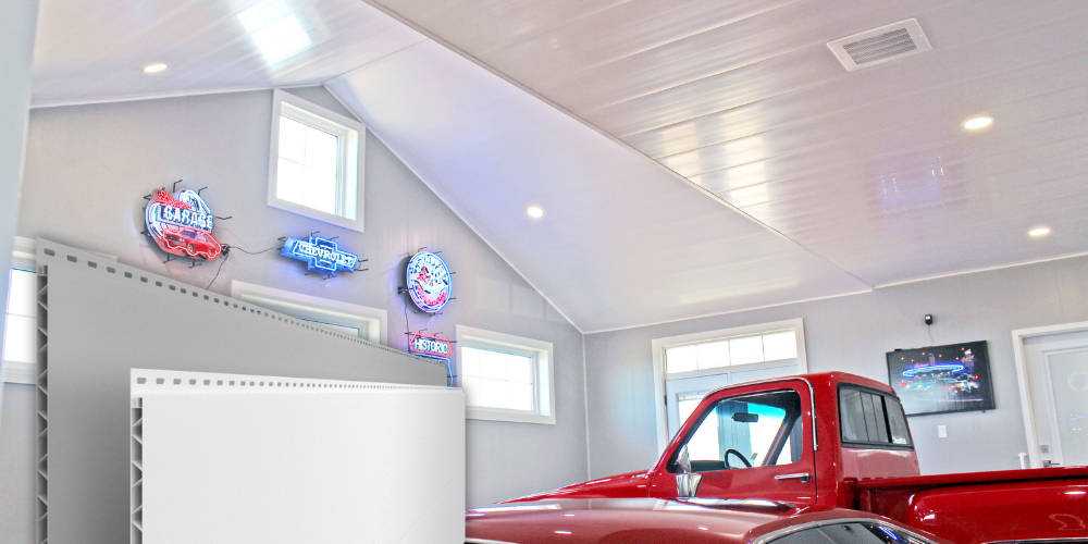 Made from PVC, pre-finished Trusscore Wall&CeilingBoard and Trusscore SlatWall panels make a statement by creating a bright, clean, and luxurious finish in high-end homes and garages. Plus, their high-strength, moisture resistant, and easy to clean properties ensure the panels will continue to look their very best long after you hand over the keys. It’s a win-win for you and your clients.
